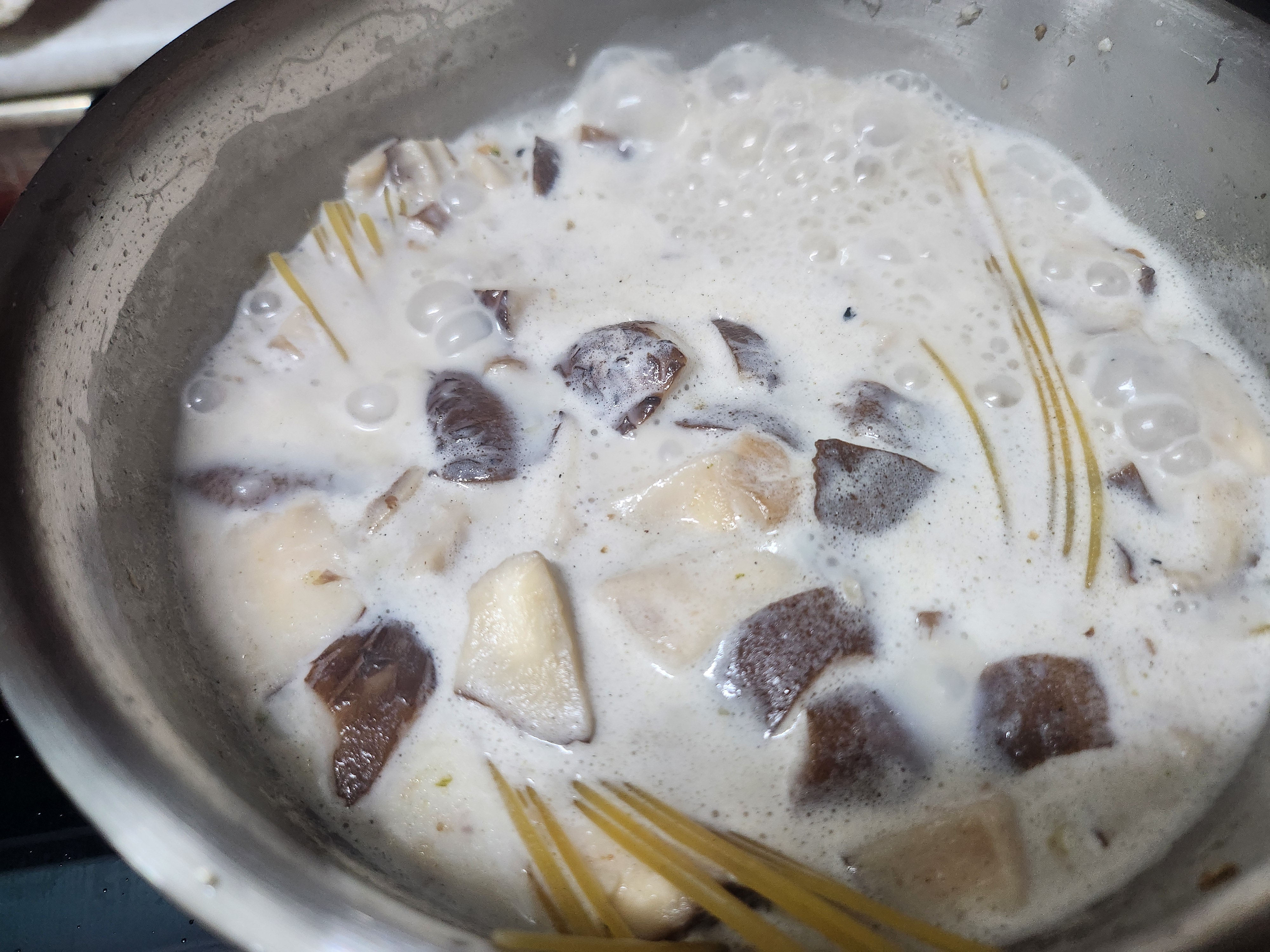 6. 시간이 다 되면 자작해지는데, 시간 전에 우유+물이 증발하면 물을 더 넣어주면 됨.