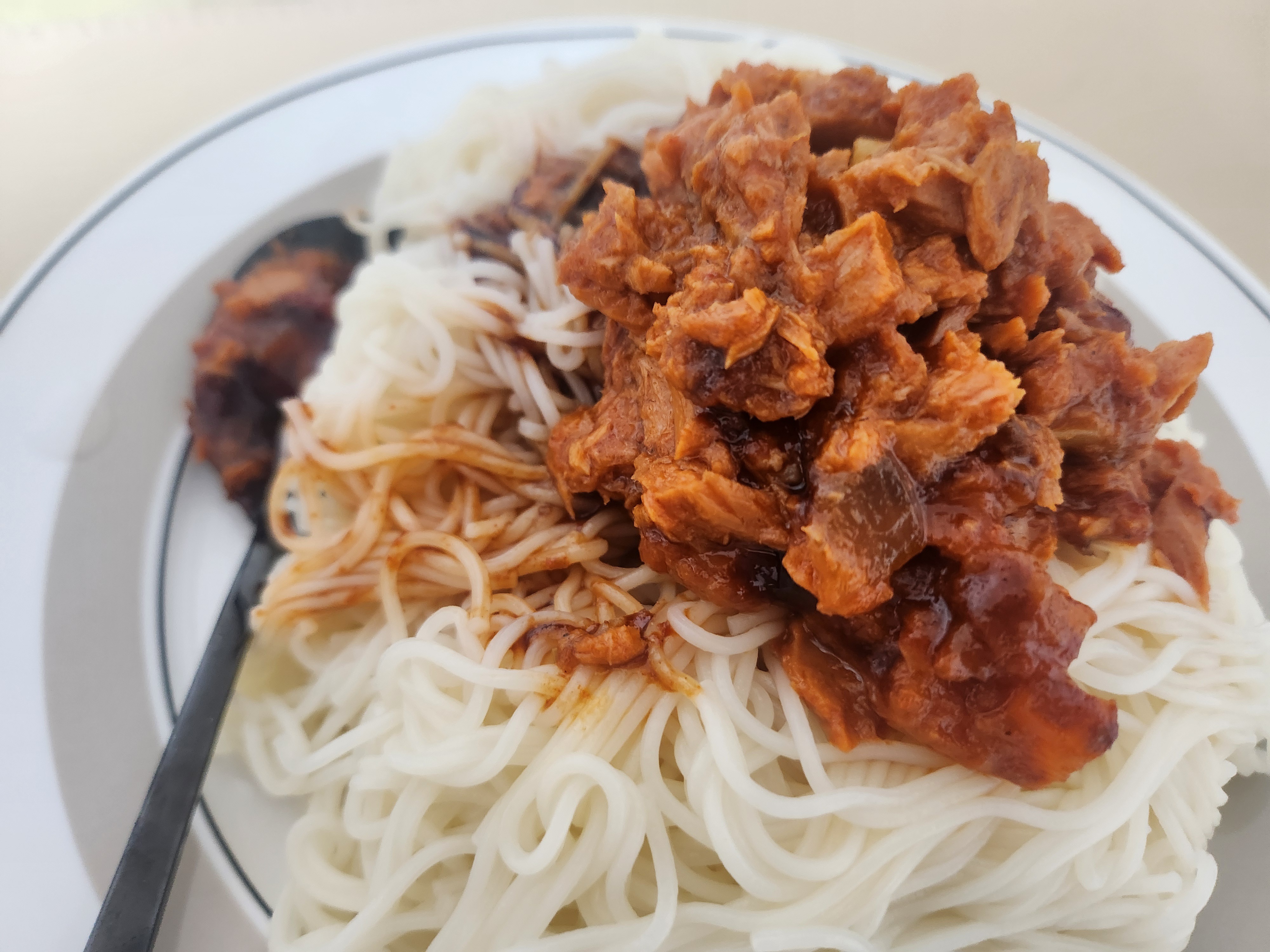 4. 국수에 참치 양념장 얹어 섞어 먹기